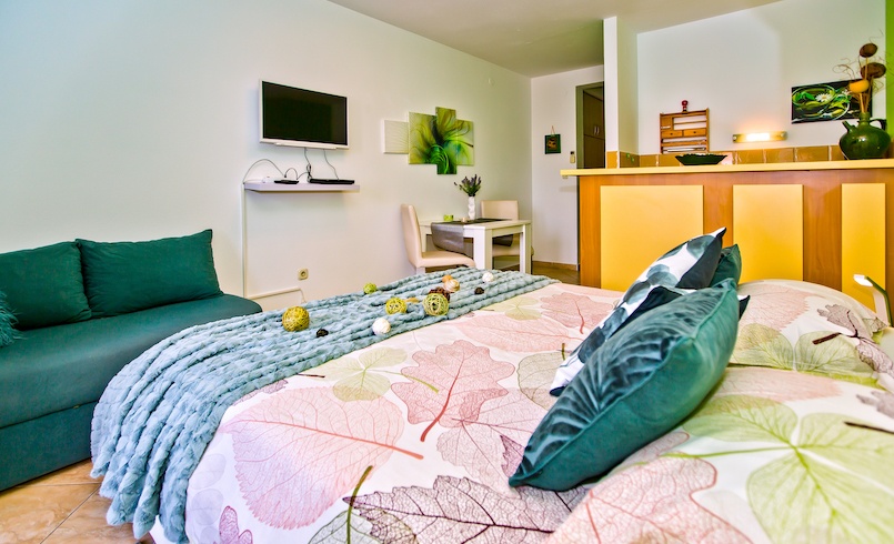Indulge in the ultimate island escape with our Premium Studio Suite. Located on the first floor, this haven of relaxation boasts captivating views of the shimmering Adriatic Sea and the picturesque town of Hvar. Decorated in calming shades of green, the suite offers a serene atmosphere where you can unwind and reconnect with nature. Step out onto your private balcony and let the gentle sea breeze and stunning vistas wash away your worries.